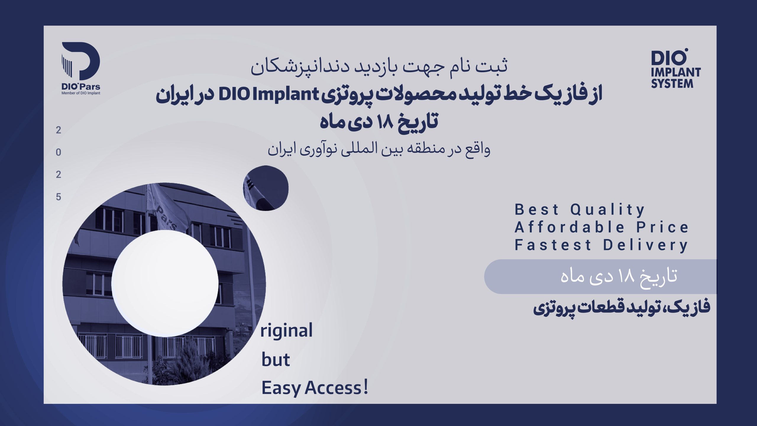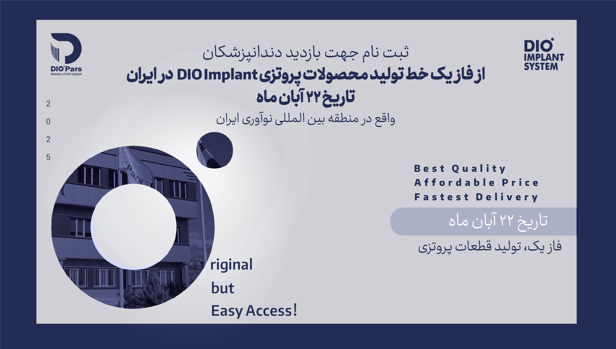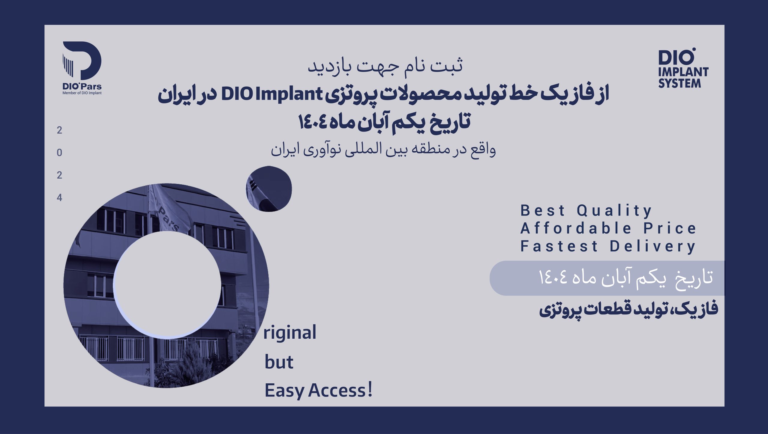 جهت هماهنگی تاریخ و زمان بازدید از کارخانه Dio Implant کارشناسان دایوپارس با شما تماس خواهند گرفت.